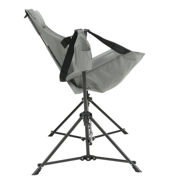 Grey Metal Folding Lawn Chair, Portable Outdoor Camping Chair with Pillow, Cup Holder and Carry Bag
