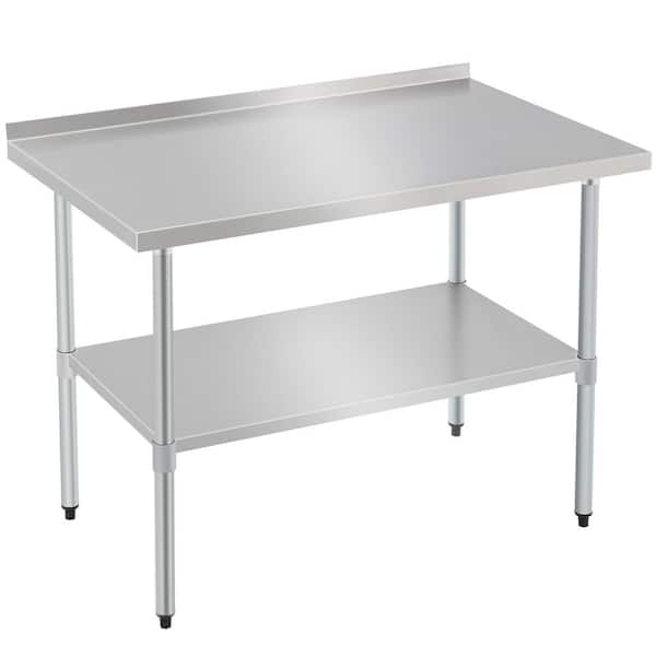Heavy-Duty Stainless Steel Prep Work Table with Backsplash&Adjustable Undershelf for Kitchens, Garages in Silver