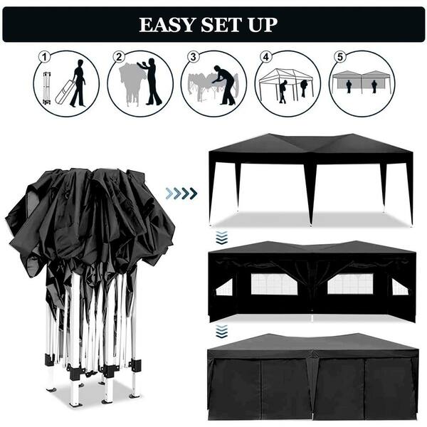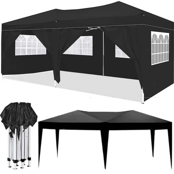 Outdoor 10 ft. x 20 ft. Pop Up Canopy Tent with with 6-Removable Sidewalls + Carry Bag + 4pcs Weight Bag-Black