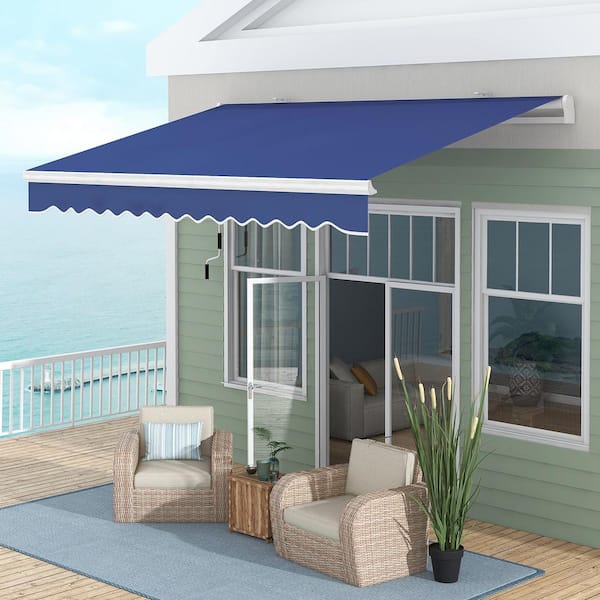 Outdoor 13 ft. x 8 ft. Retractable Awning w/Manual Crank Handle UV and Water-Resistant Fabric Aluminum Frame-Dark Blue