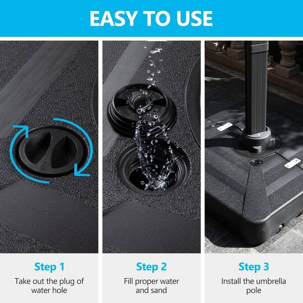 Outdoor Patio Umbrella Base with Wheels for Cantilever Offset Umbrella Water and Sand Filled, 440 lbs. Capacity in Black