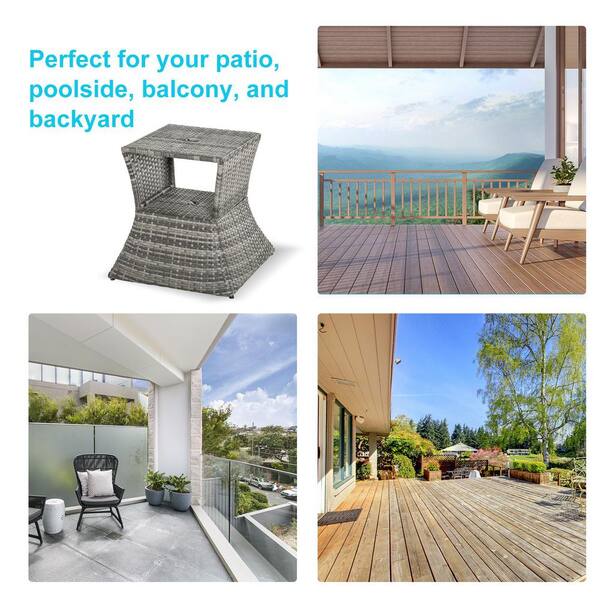 Rattan Wicker Side Table with Umbrella Hole, 2 Tier Storage Shelf for All Weather for Outdoor, Patio, Garden, Backyard