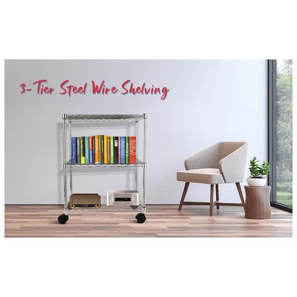Simple Deluxe 3-Shelf Shelving with Wheels Steel Organizer 23 in. W x 13 in. D x 30 in. H in Silver