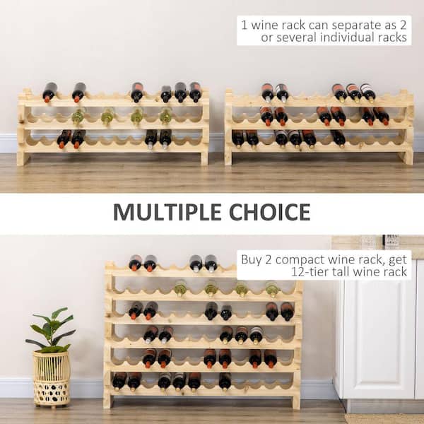 Stackable Wine Rack, Modular Storage Shelves, 72-Bottle Holder, Display Rack for Kitchen, Pantry, Cellar in Natural