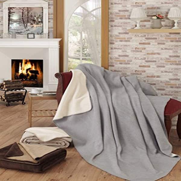 50 in. W x 65 in. L Gray and Ivory Reversible Soft Cotton Cozy Fleece Blanket