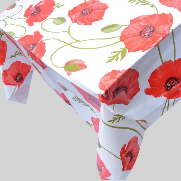 55 in. Round Indoor and Outdoor Red Poppy Flower Design Tablecloth for Dining Table