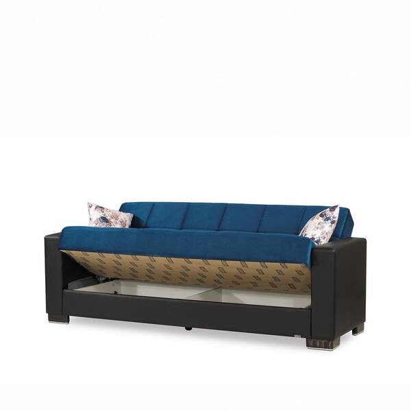 Armada 88 in. Emerald Blue Microfiber 3-Seater Full Sleeper Convertible Sofa Bed with Storage