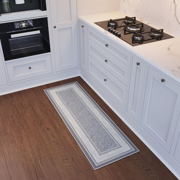 Basics Collection Non-Slip Rubberback Bordered Design 2x5 Indoor Runner Rug, 1 ft. 8 in. x 4 ft. 11 in., Light Gray
