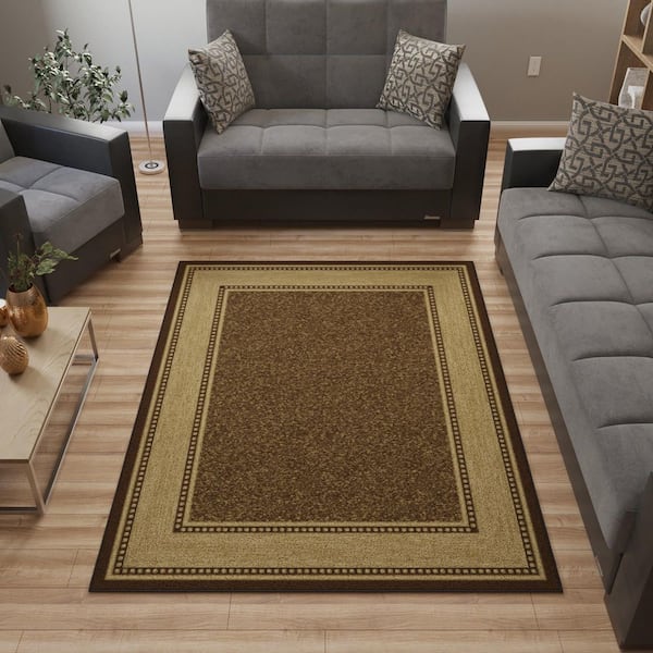 Basics Collection Non-Slip Rubberback Bordered Design 5x7 Indoor Area Rug, 5 ft. x 6 ft. 6 in., Brown