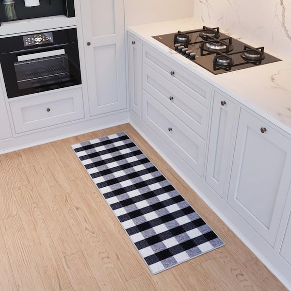 Basics Collection Non-Slip Rubberback Checkered 2x5 Indoor Runner Rug, 1 ft. 8 in. x 4 ft. 11 in., Black Checkered
