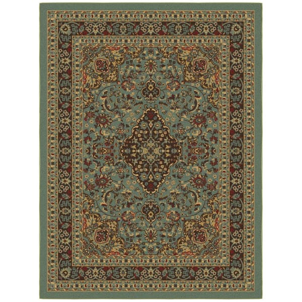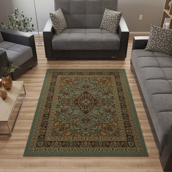 Basics Collection Non-Slip Rubberback Medallion Oriental Design 5x7 Indoor Area Rug, 5 ft. x 6 ft. 6 in., Seafoam Green