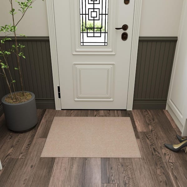 Emmy Non-Slip Rubberback Indoor Custom Cut 2 ft. x 3 ft. Entryway Mat Area Rug, Beige