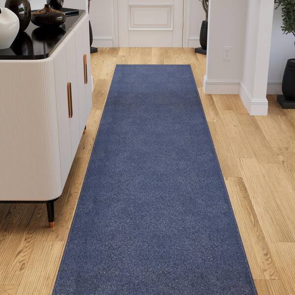 Emmy Non-Slip Rubberback Indoor Custom Cut Extra Long Runner Rug 2 ft. x 45 ft., Navy