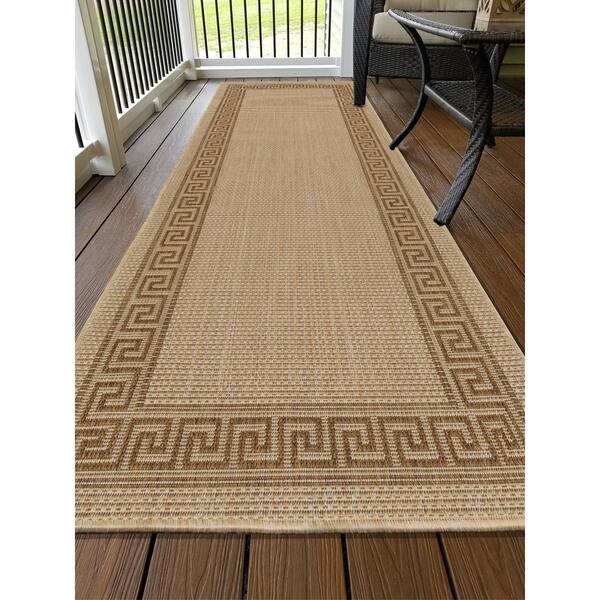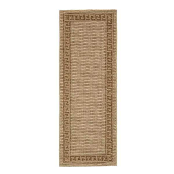 Jardin Collection Border Beige Reversible Outdoor 2 ft. 7 in. x 6 ft. 11 in., Runner Rug