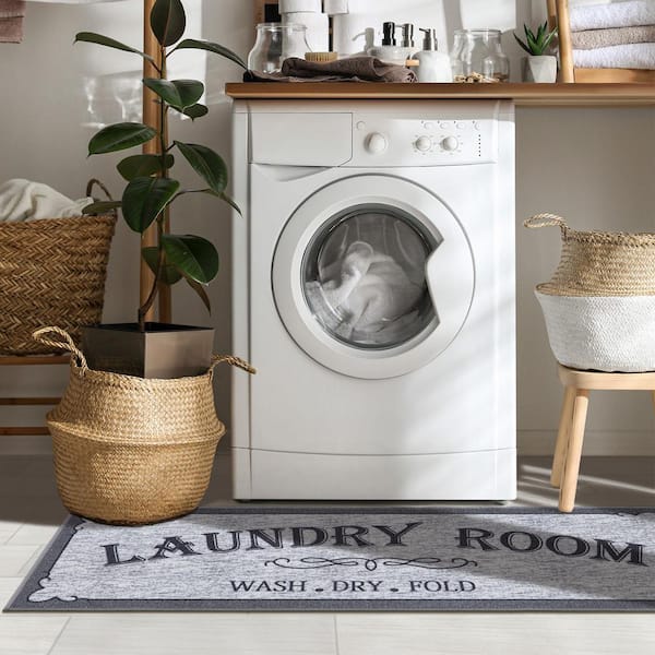 Laundry Collection Non-Slip Rubberback Laundry Text 2x5 Laundry Room Runner Rug, 20 in. x 59 in., Light Gray