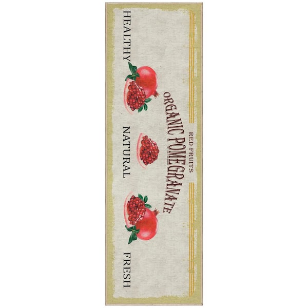 Non Shedding Washable Wrinkle-free Cotton Pomegranate 2 x 5 Kitchen Runner Rug,1 ft. 8 in.x4 ft. 11 in.,Beige/Multicolor