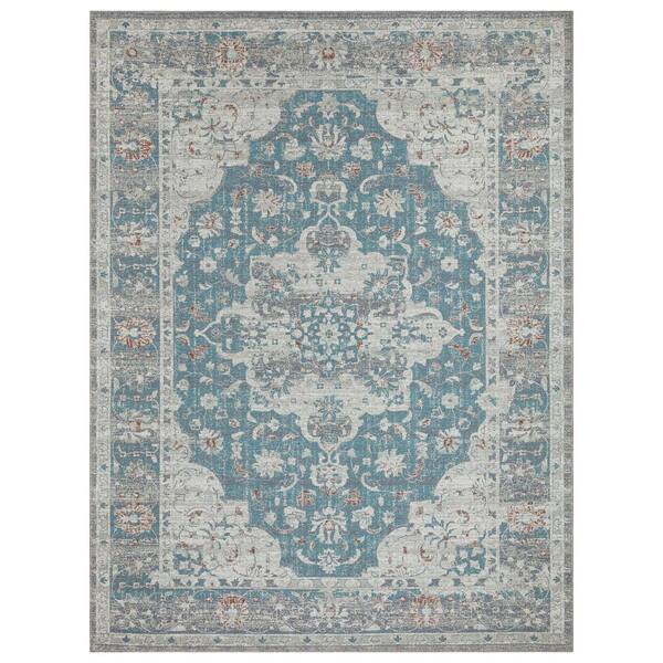 Non Shedding Washable Wrinkle-free Flatweave Medallion 8x10 Living Room Area Rug,7 ft. 10 in.x9 ft. 10 in.,Greenish Blue