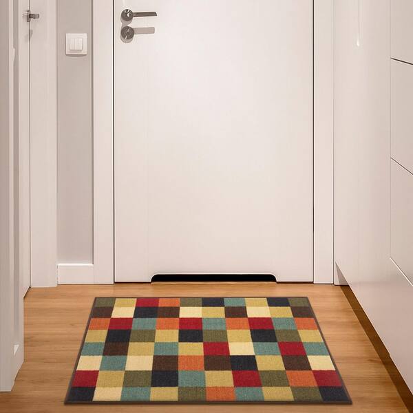 Ottohome Collection 2 ft. 3 in. x 3 ft. Non-Slip Rubberback Checkered Indoor Area Rug/Mat, Multicolor