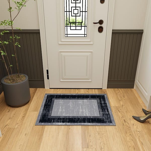 • Stylish bordered rug for entryways, kitchens, and hallways