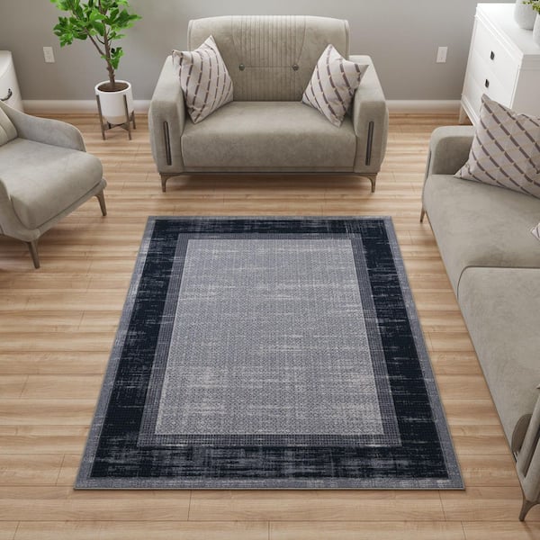 Ottohome Collection Modern Bordered Design Area Rug, 5' X 6'6", Gray/Navy