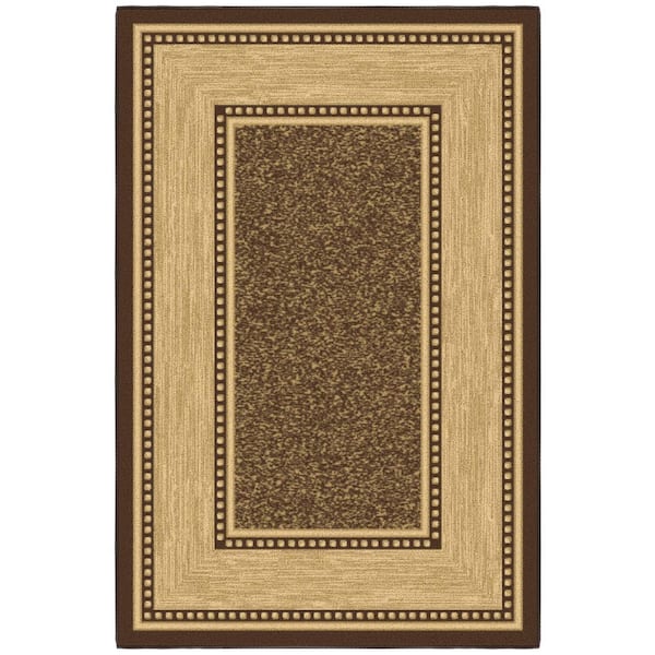 Ottohome Collection Non-Slip Rubberback Bordered Design 3x5 Indoor Area Rug, 3 ft. 3 in. x 5 ft., Brown