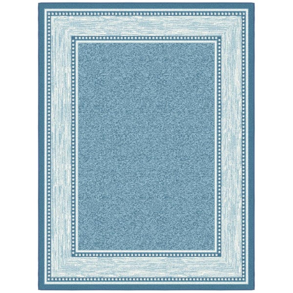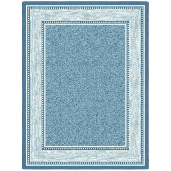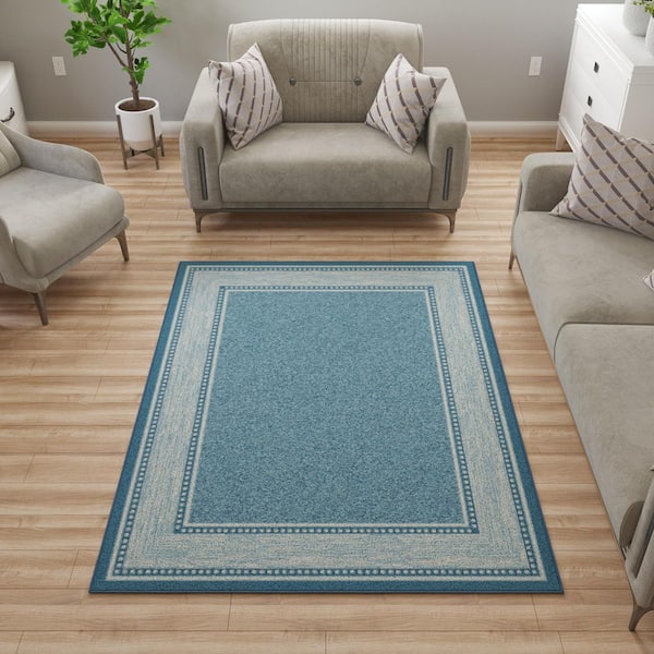 Ottohome Collection Non-Slip Rubberback Bordered Design 5x7 Indoor Area Rug, 5 ft. x 6 ft. 6 in., Teal Blue