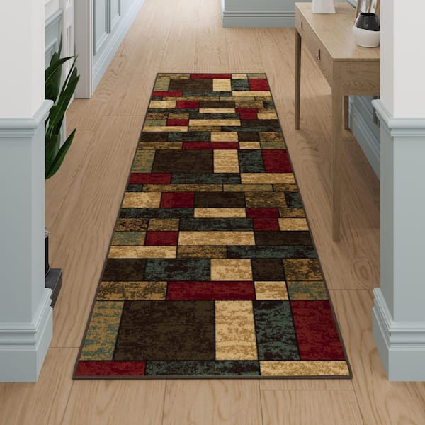 Ottohome Collection Non-Slip Rubberback Boxes Design 3x10 Indoor Runner Rug, 2 ft. 7 in. x 9 ft. 10 in., Multicolor