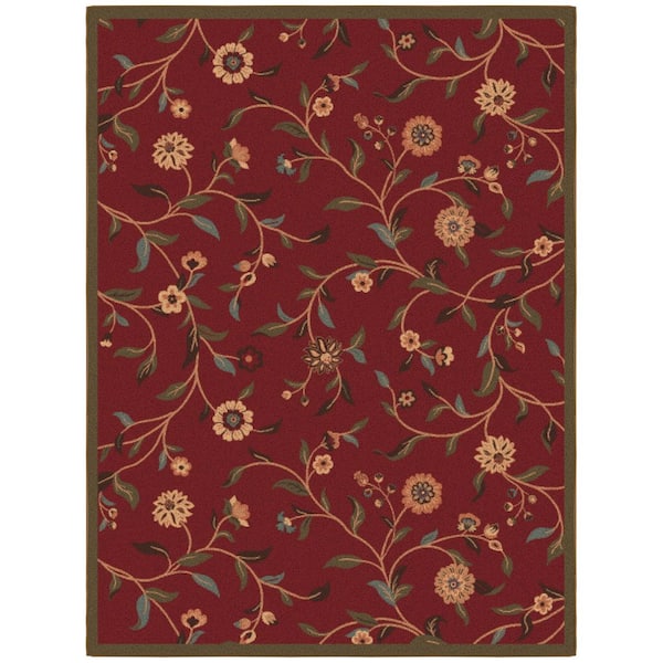 Ottohome Collection Non-Slip Rubberback Floral Leaves 5x7 Indoor Area Rug, 5 ft. x 6 ft. 6 in., Dark Red