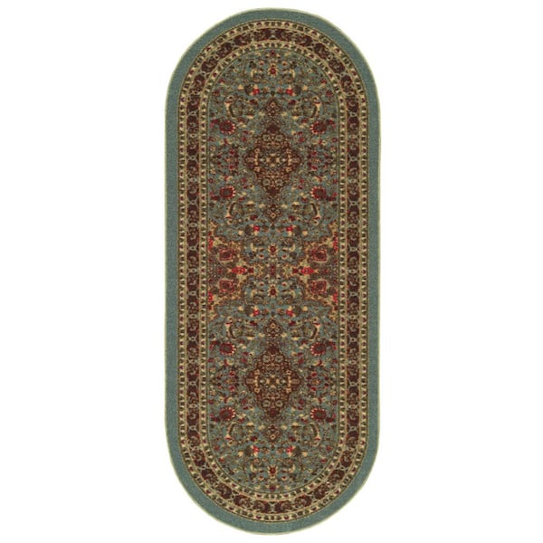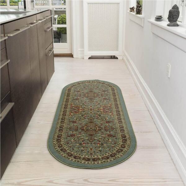 Ottohome Collection Non-Slip Rubberback Medallion 2x5 Oval Runner Rug,1 ft. 8 in. x 4 ft. 11 in.,Dark Seafoam Green