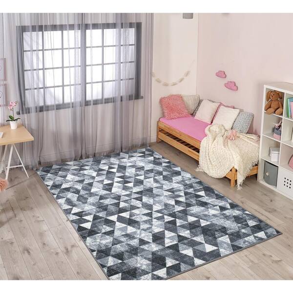 Ottohome Collection Non-Slip Rubberback Modern Abstract/Geometric 5x7 Indoor Area Rug, 5 ft. x 6 ft. 6 in., Gray