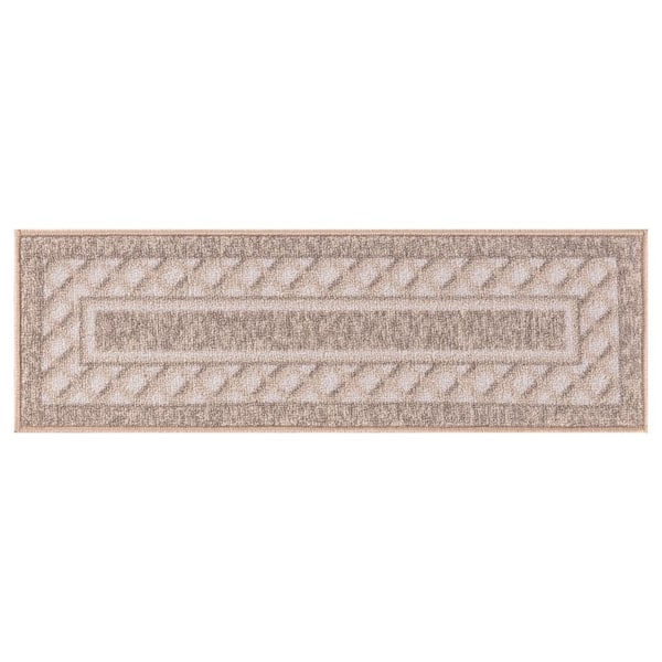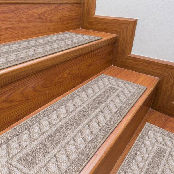 Ottohome Collection Non-Slip Rubberback Modern Bordered Design 8.5 in. x 26 in. Indoor Stair Tread Covers, 7 Pack, Beige