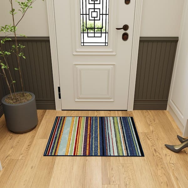 Ottohome Collection Non-Slip Rubberback Striped 2x3 Indoor Entryway Mat, 2 ft. 3 in. x 3 ft., Multicolor