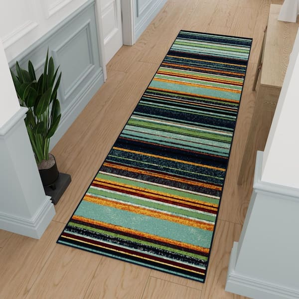 Ottohome Collection Non-Slip Rubberback Striped 3x10 Indoor Runner Rug, 2 ft. 7 in. x 9 ft. 10 in., Multicolor