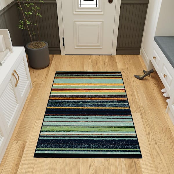 Ottohome Collection Non-Slip Rubberback Striped 3x5 Indoor Area Rug, 3 ft. 3 in. x 5 in., Multicolor