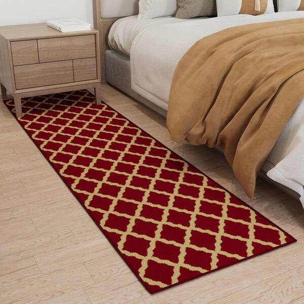 Ottohome Collection Non-Slip Rubberback Trellis Design 2x7 Indoor Runner Rug, 1 ft. 10 in. x 7 ft., Dark Red