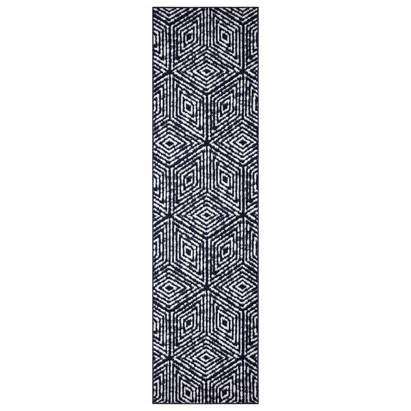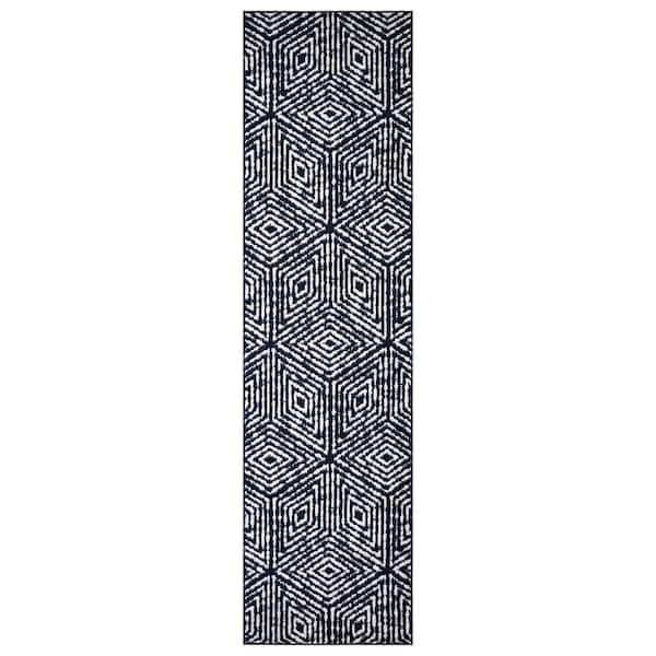 Rixos Collection Collection Geometric Cubes 3x8 Indoor Shag Runner Rug, 2 ft. 7 in. x 9 ft. 10 in., Black/White