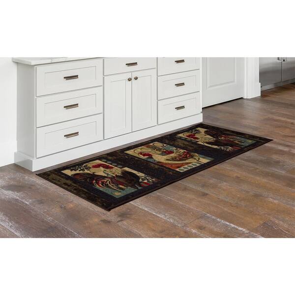 Siesta Kitchen Collection Non-Slip Rubberback Rooster Design 2x5 Kitchen Rug, 1 ft. 8 in. x 4 ft. 11 in., Black Rooster