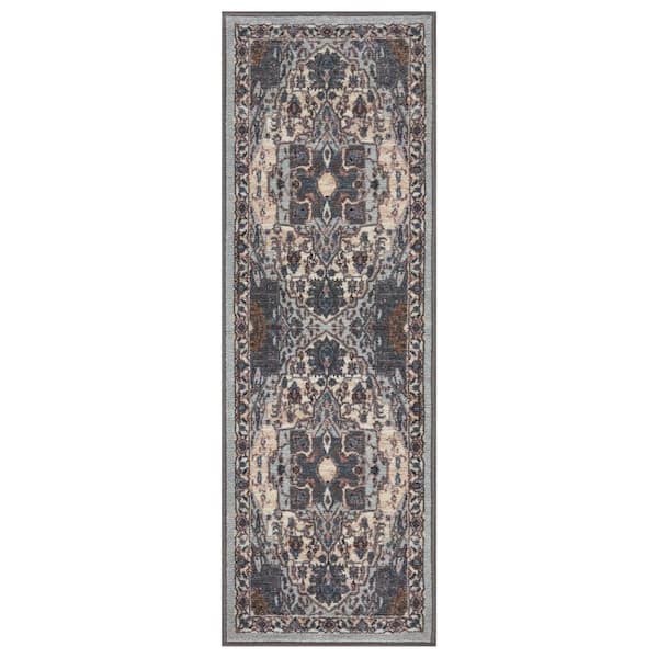 Tokyo Collection Non-Slip Rubberback Border Design 2x5 Indoor Runner Rug, 1 ft. 8 in. x 4 ft. 11 in., Gray