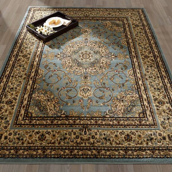 Traditional Oriental Medallion Light Blue 5 ft. x 7 ft. Area Rug