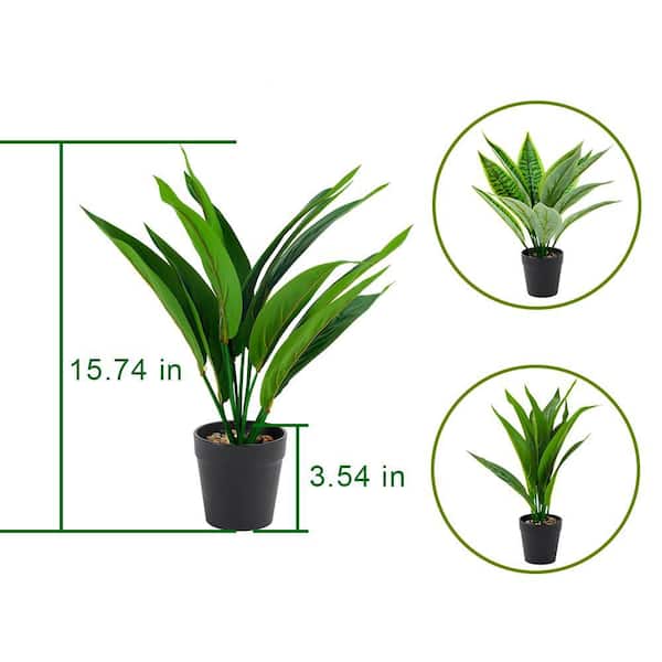 15 in. Green Leaf Artificial Plant - Faux Indoor Greenery Decor in Round Planter Pot for Home Office Tabletop