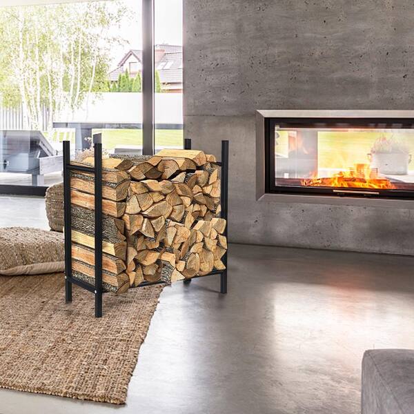 23.7 in. x 10 in. x 24 in. Outdoor Fireplace Wood Rack Firewood Storage Outdoor Firewood Stacker, Black