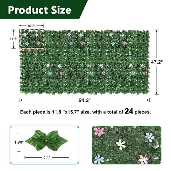 24 Artificial Peanut Leaf Privacy Fence Screens with Flowers for Balcony, Garden Fence Decorative Hedge Flower Backdrops