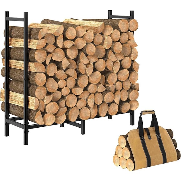 31.5 "L x 10 "W x 33.8 "H , Outdoor Indoor Firewood Shelf and Carry Bag Set, Fireplace Firewood Stacking with Pulleys