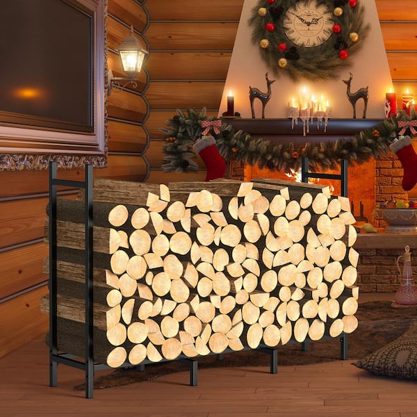 48 in. L x 13.77 in. Wx 31.88 in. H Firewood Rack,Fireplace Wood Storage Stack Outdoor,Firewood Storage Rack Metal Black
