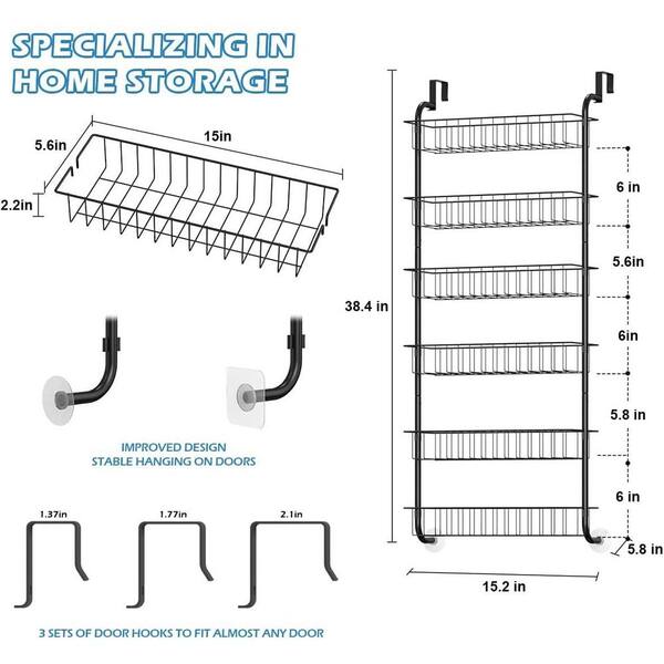 6-Tier Over the Door Hanging Pantry Door Storage with 6 Baskets Behind the Closet Door Storage Black