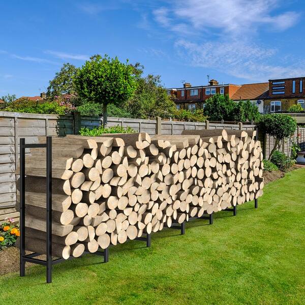 95.67 in. x 10.03 in. x 31.73 in. Fireplace Firewood Storage Rack Outdoor Firewood Storage Rack Metal Black
