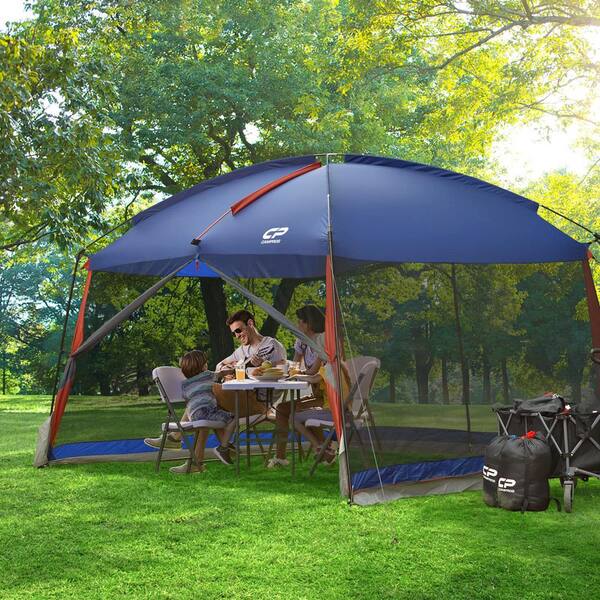 Outdoor 12 ft. x 10 ft. x 90 in. 3-Person Navy Blue Fabric Camping Tent Screened Mesh Net