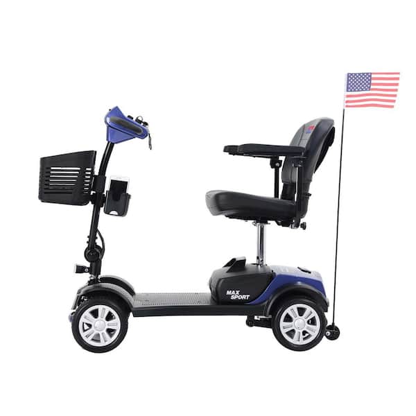 Outdoor 4-Wheel Compact Electric Scooter With 300 W Motor, Smart Electromagnetic Brake, With Cup Holder And Flag, Blue