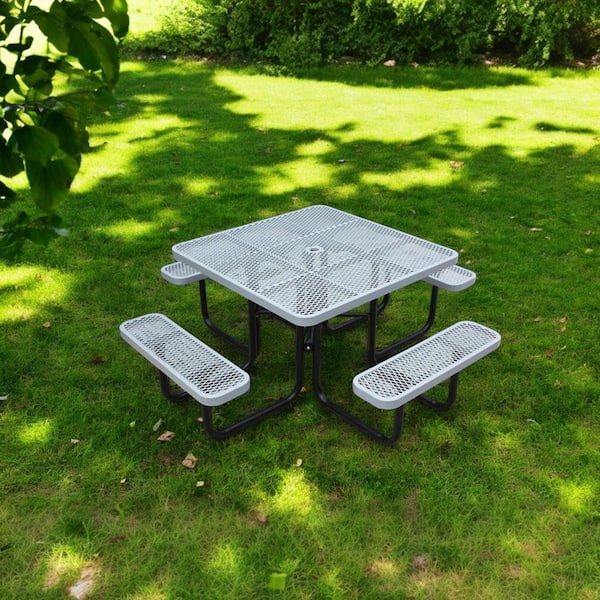 Outdoor 79 in. Thermoplastic Coated Square Steel Picnic Tables 8-Person with Umbrella Hole, Patio Dining Table, Gray
