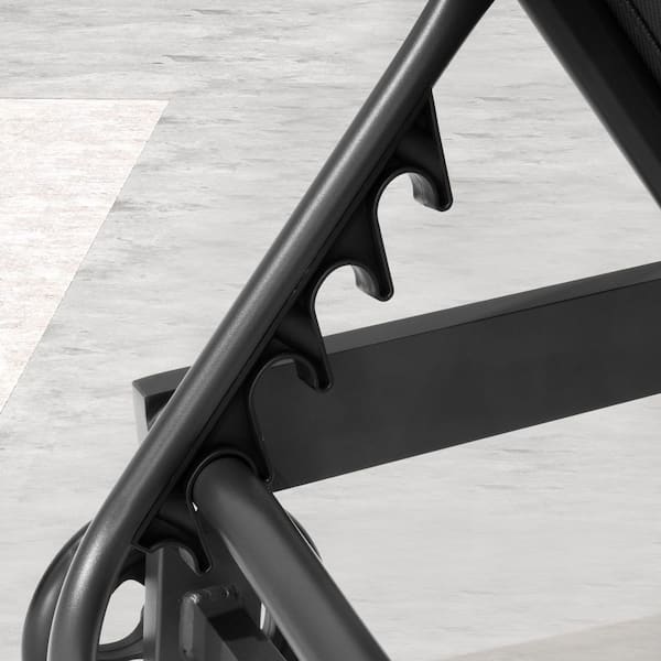 Outdoor Aluminum Adjustable Patio Chaise Lounge Chair Recliner wtih Wheels in Black (Set of 2)